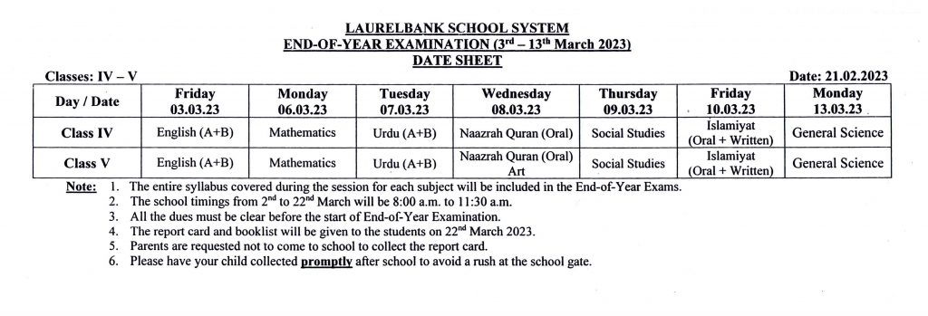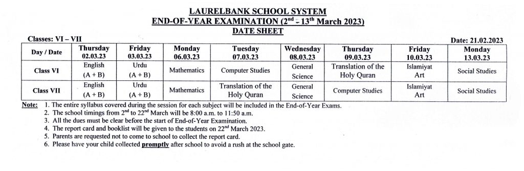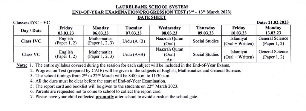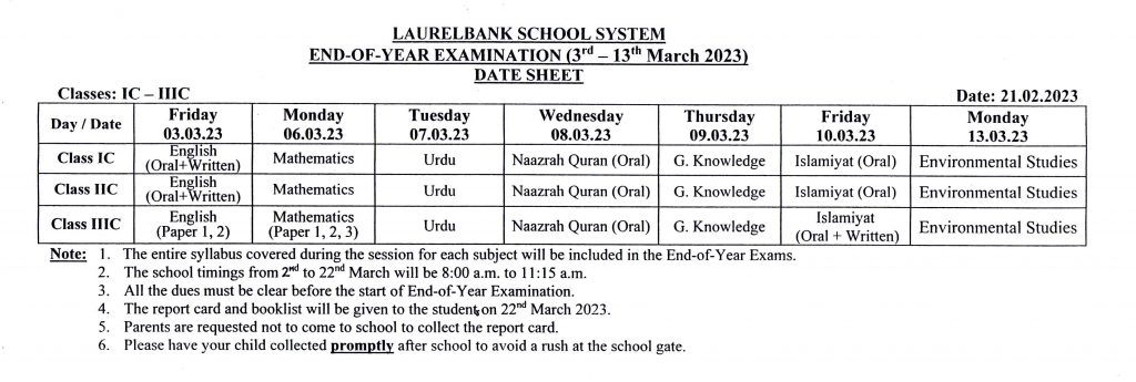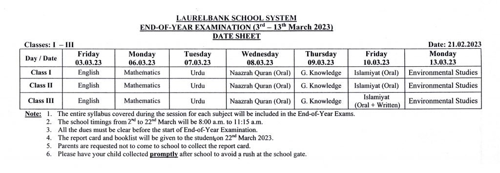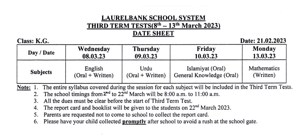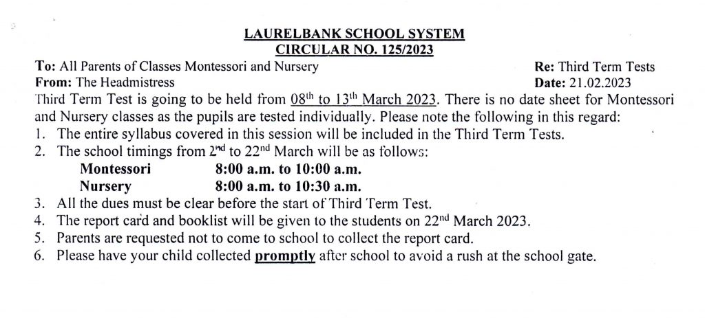 Circular No. 125 & Date Sheets (Third Term Test & End-of-Year Examination) Dated: 21 February, 2023